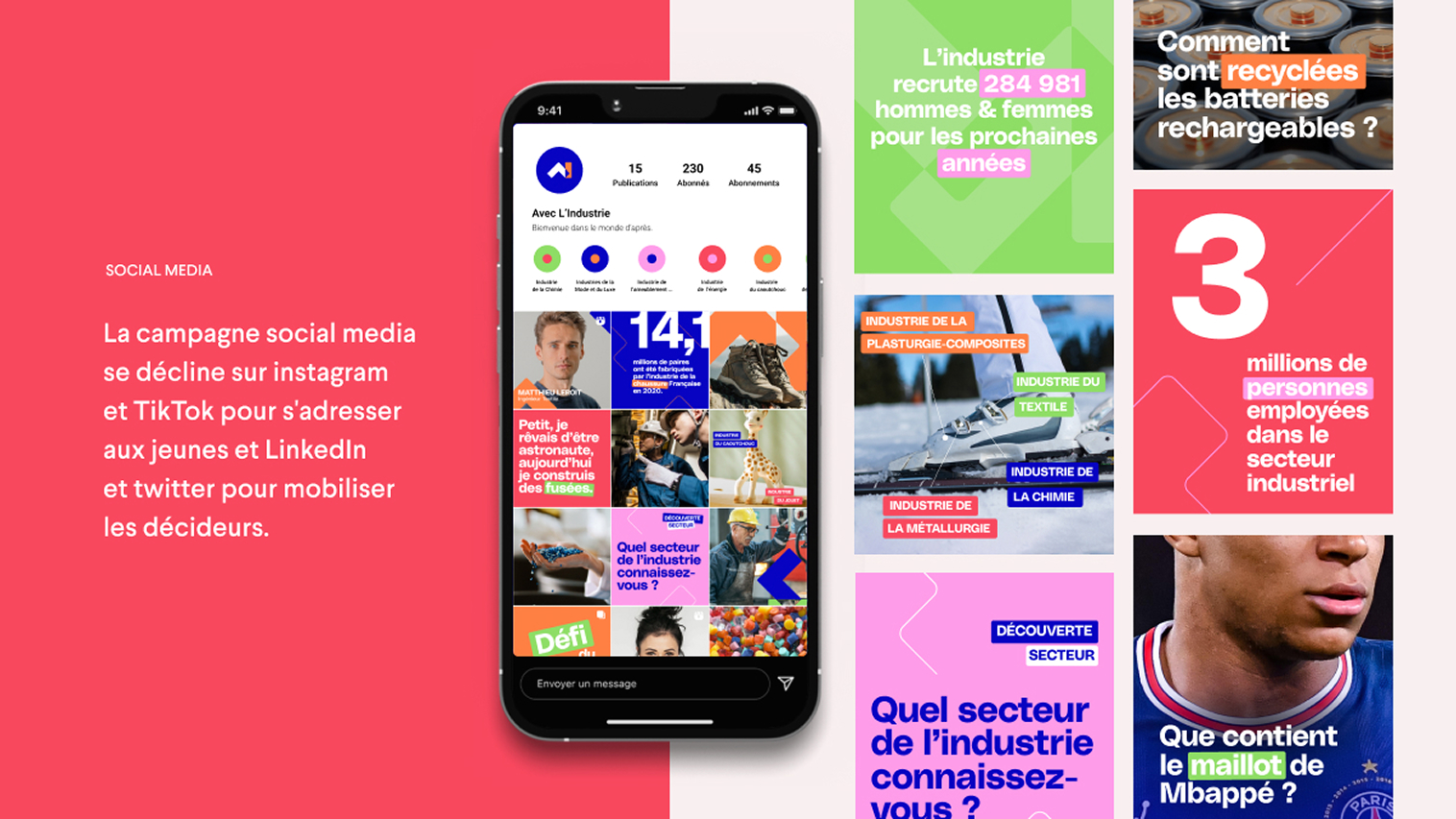Cette stratégie des moyens a permis de relayer la bannière Avec l’Industrie sur tous les terrains d’expression : du quotidien digital à la rencontre physique.