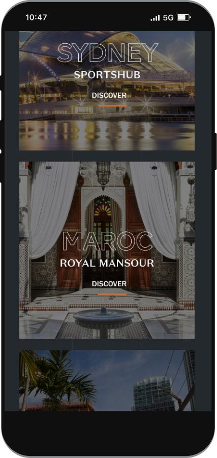 Chaque projet est mis en scène pour inviter l’utilisateur à admirer, comprendre et ressentir l’expertise unique de Bouygues Bâtiment International.