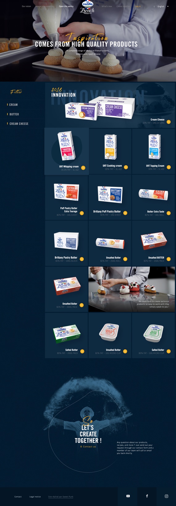 Le nouveau site de Candia Professional se positionne comme une source d’inspiration quotidienne pour les cuisiniers. Nous concevons cette plateforme comme un livre de recette imagé, où chacun peut composer son tableau d’inspirations culinaires comme il l’entend dans son espace personnel. Un bouillon de créativité made in France pour les professionnels du monde entier qui fait de la marque un partenaire créatif plutôt qu’un simple prestataire.