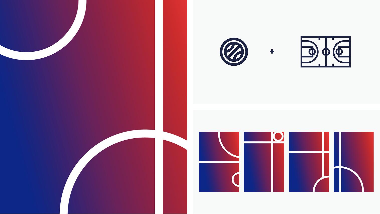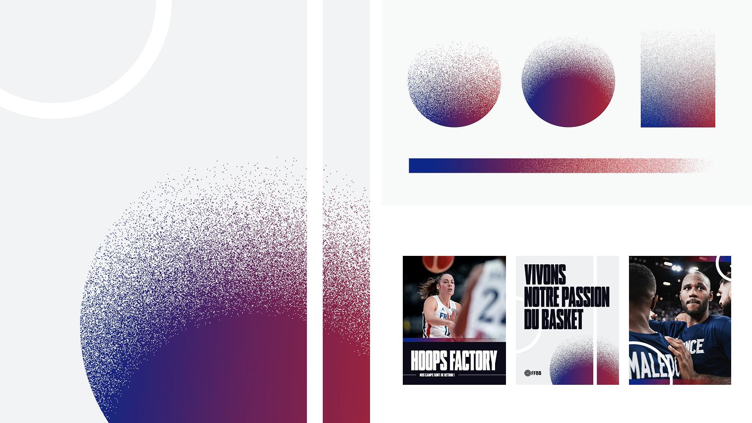 Un système graphique basé sur la combinaison du logo FFBB et des marquages du terrain de basket