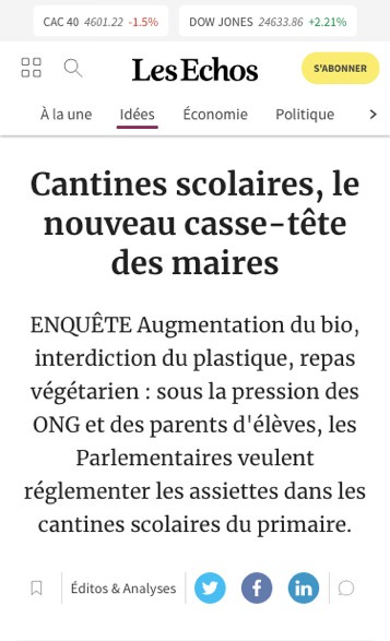 Alors qu’un projet de loi Agriculture et Alimentation à venir s’oriente vers 50% de produits durables, dont 20% de bio en restauration collective d’ici 2022, la FNH alerte sur la nécessité de donner aux cantines les moyens d’y parvenir. Elle formule en ce sens une proposition originale : le « Bonus Cantine Bio et Locale ». Challenge : sensibiliser l’opinion publique afin d’obtenir un large soutien.