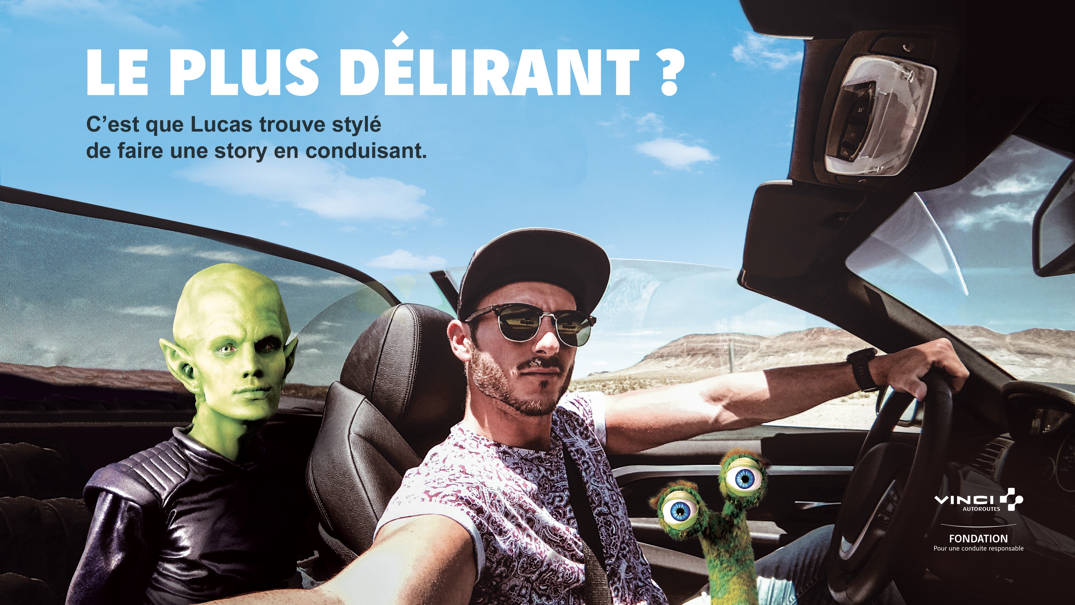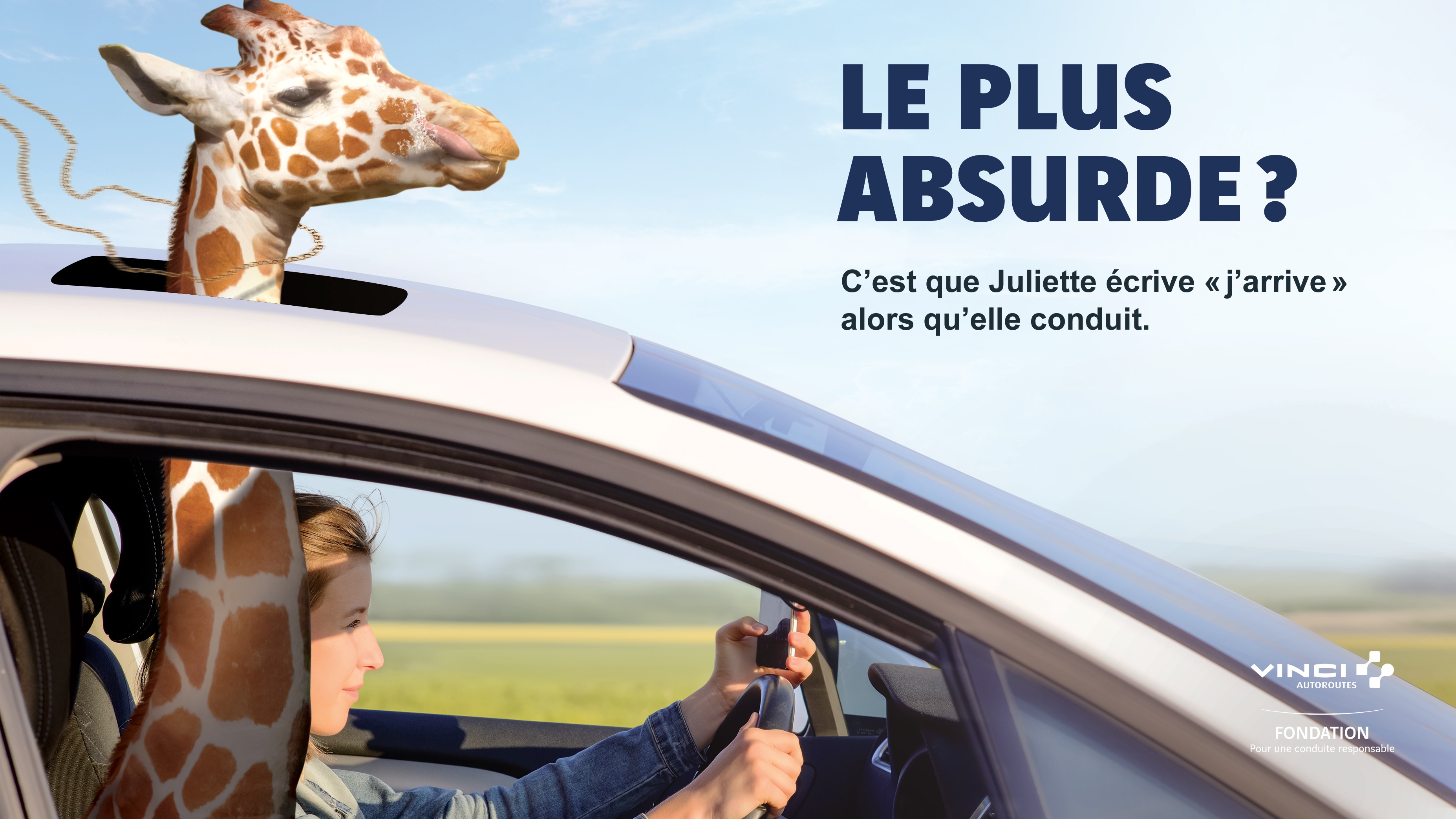 Sweet Punk propose à la Fondation Vinci Autoroutes un positionnement décalé, entre humour et prise de conscience. Si 1 automobiliste sur 10 en France a déjà eu, ou failli avoir, un accident à cause de l’utilisation du téléphone au volant, ils ne semblent pourtant pas se rendre réellement compte des risques qu’ils encourent lorsqu’ils sont inattentifs au volant. La campagne repose alors sur des situations absurdes au premier regard, puis aberrantes au second…