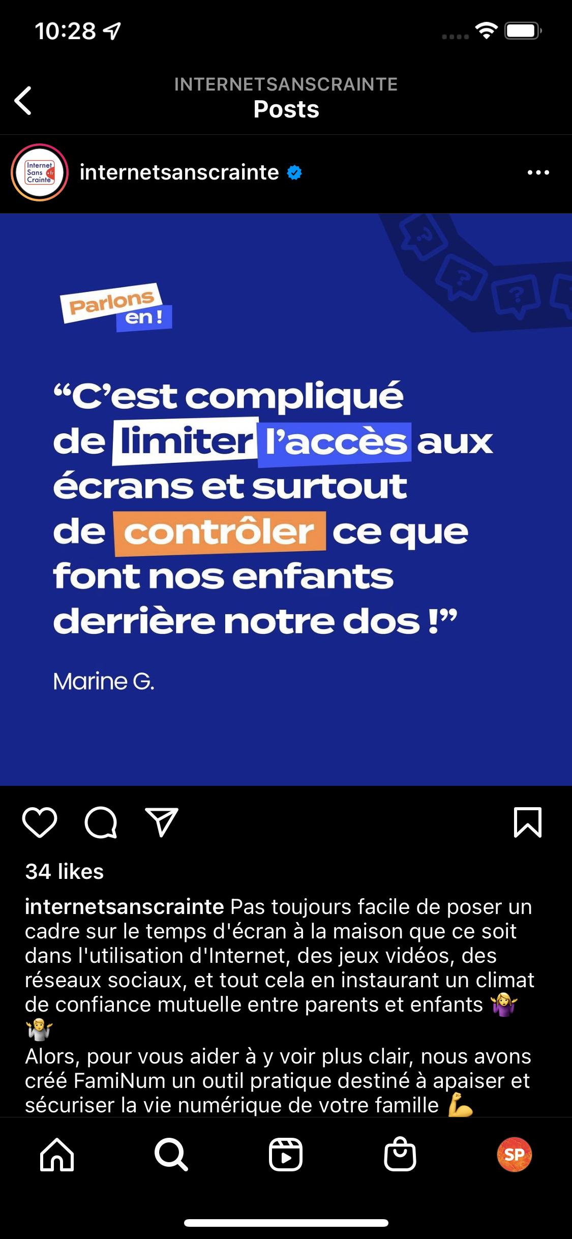 Temps d’écran sur les réseaux sociaux ou sur les jeux vidéos, cyberharcèlement, fake news…. Pas évident en tant que parent d’y voir clair et d’établir un cadre pour son enfant ou son ado . C’est pour ça que nous avons construit un feed Instagram comprenant des témoignages de situations concrètes vécues par les parents, des interviews d’influenceuses digital mums, et des outils d’accompagnement aux bonnes pratiques créés par Internet Sans Crainte.