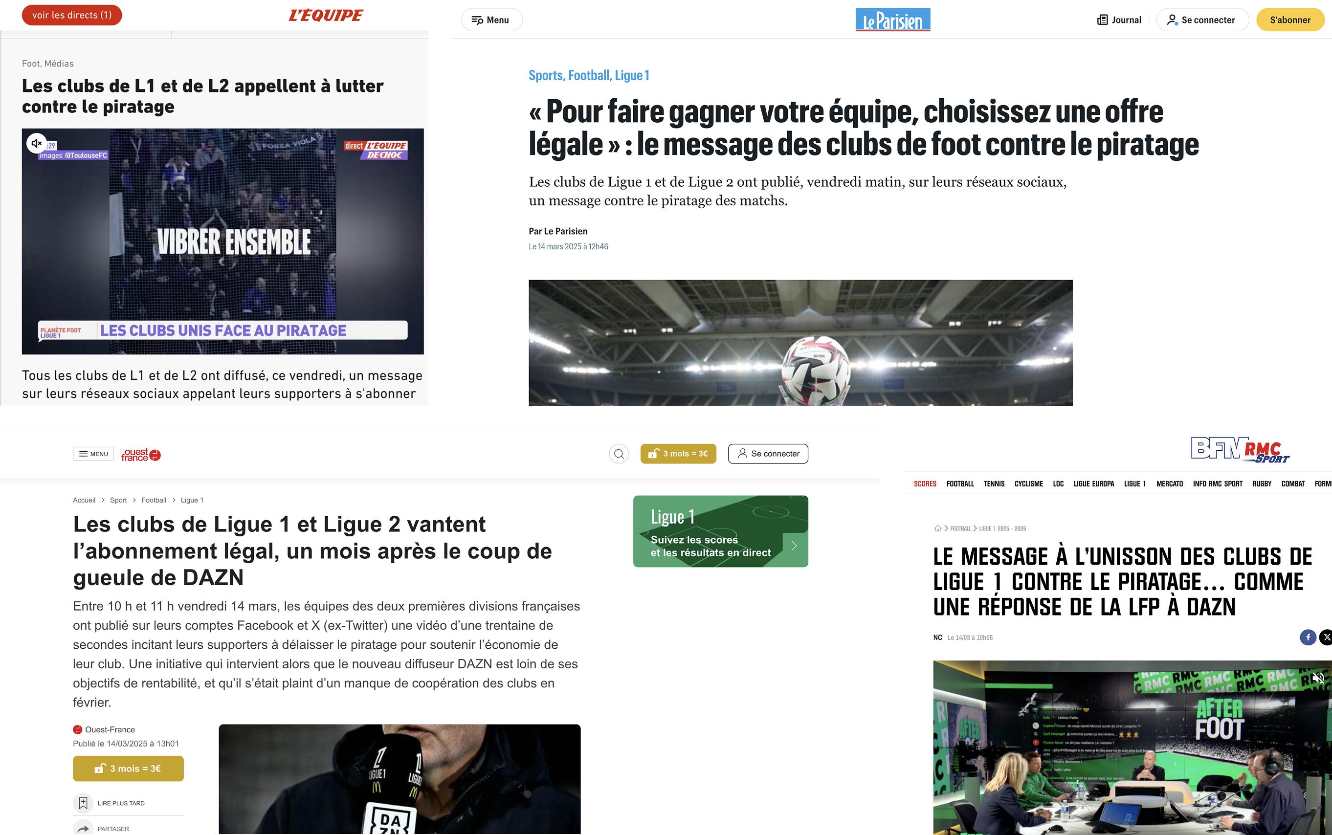 Orchestrer une prise de parole commune pour lutter contre le piratage de la ligue 1