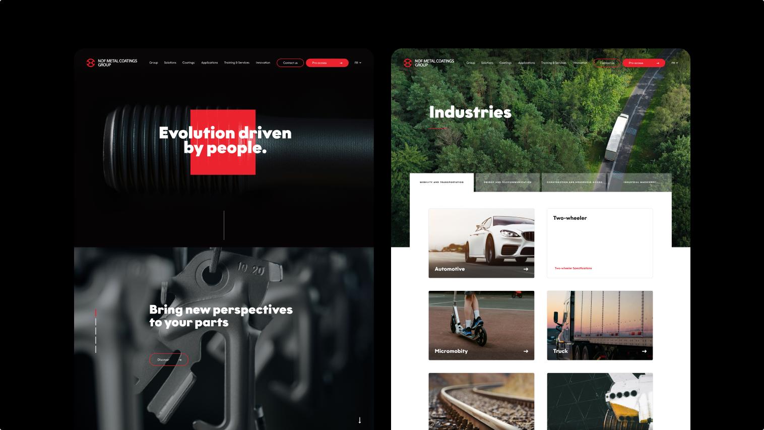 NOF Metal Coatings Group disposait d’une légitimité technique incontestable, mais souffrait d’une image fragmentée. Sa gamme de produits, aussi performante que complexe, manquait de lisibilité et son identité restait cantonnée à une sphère experte. Le défi : affirmer une vision corporate forte, lisible et universelle, capable de fédérer les sociétés sœurs, de clarifier l’offre produit et de légitimer son leadership à l’échelle mondiale.
