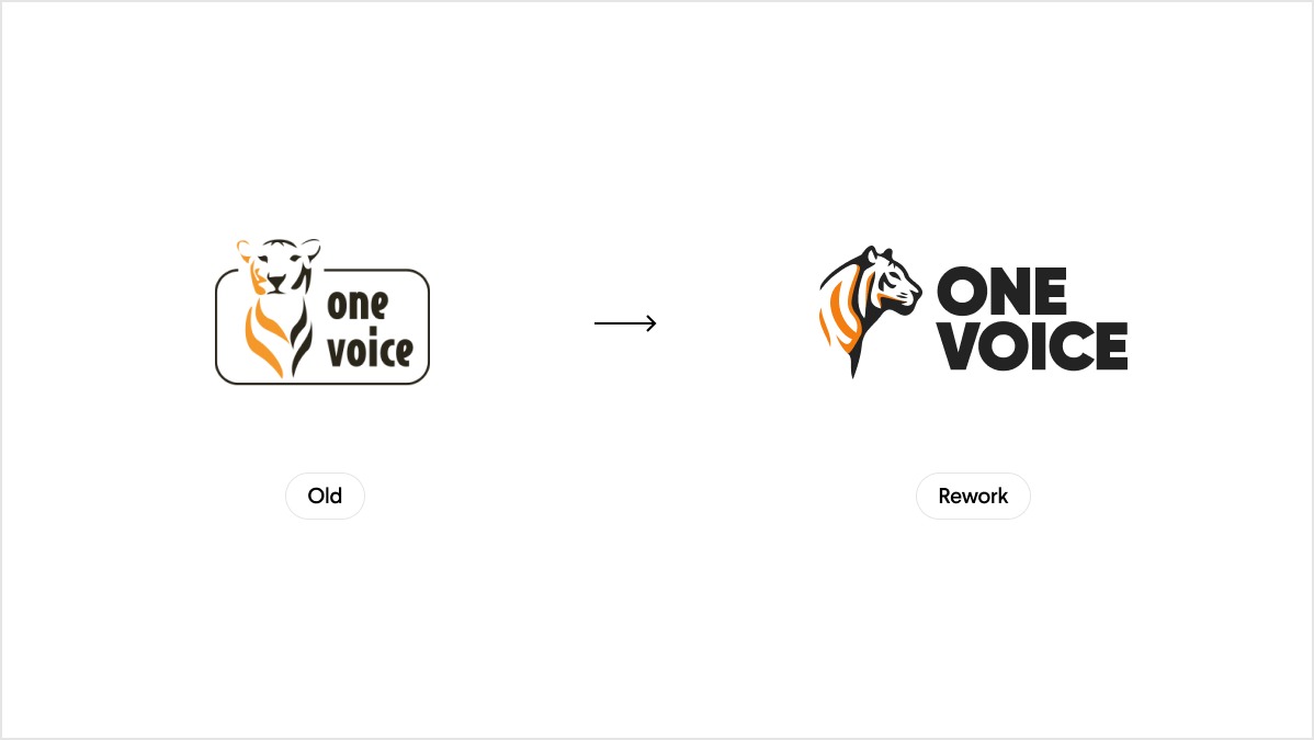 Le tigre, animal totem de l’association est mis à l’honneur pour symboliser la force tranquille de One Voice, soutenu par des couleurs puissantes et engagées pour un univers graphique de caractère mais nuancé de sensibilité.