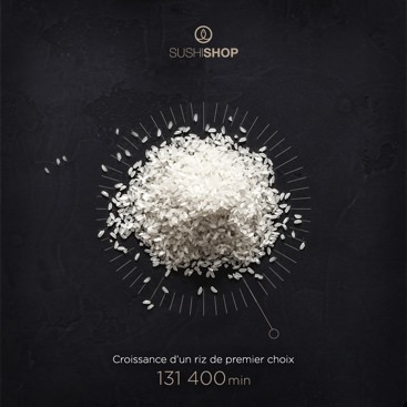 Alors que les consommateur sont de plus en plus sensibles à la durée de livraison, nous avons voulu mettre en avant le temps et la patience qu’il faut pour maîtriser l’art du sushi, ou encore récolter des grains de riz de qualité. Ainsi c’est toute l’attention de la marque qui se trouve valorisée, intelligemment mis en contraste avec 25 petites minutes d’attente.