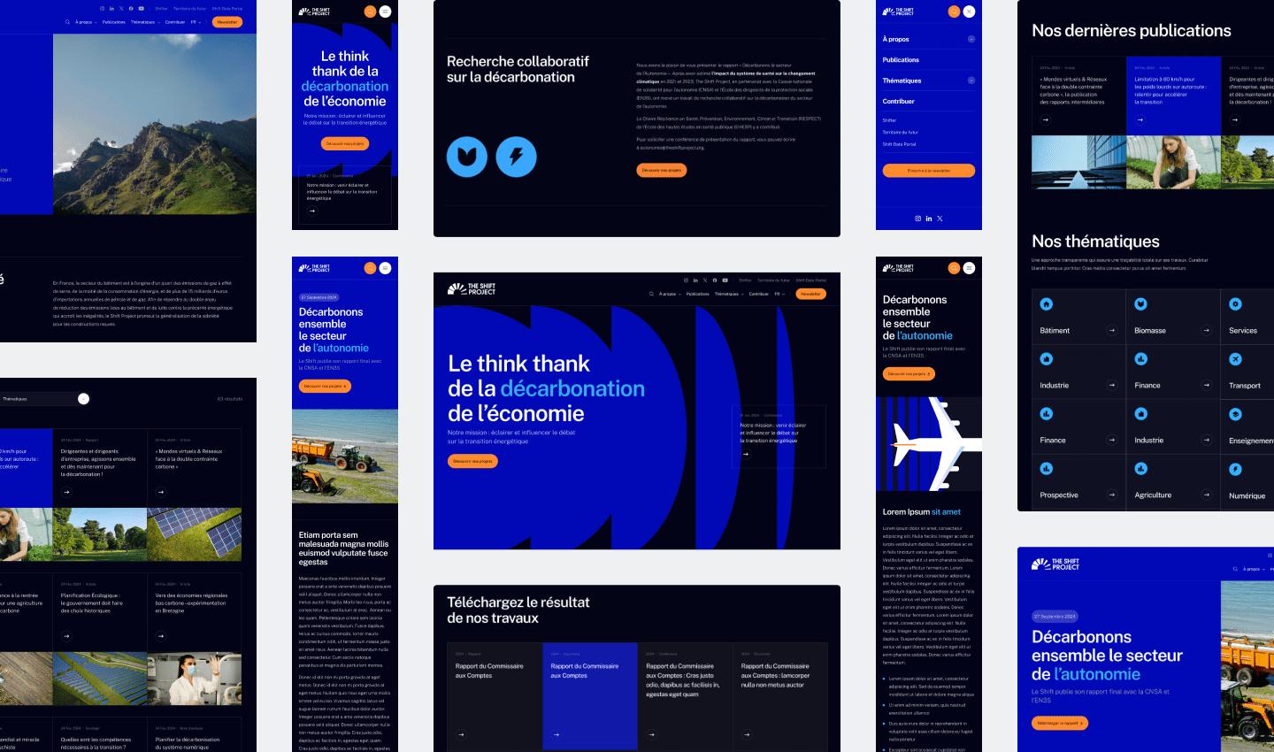 Le défi : refondre l’identité digitale de The Shift Project en cohérence avec ses valeurs. Un site sobre, efficace, éditorialisé, capable de traduire visuellement un projet de société ambitieux — sans exploser les compteurs carbone.