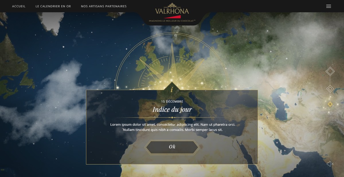 « Le Ticket d’Or » est une activation en 360 se réappropriant les contes de Charlie et la Chocolaterie pour mettre en valeur le savoir-faire et l’histoire de Valrhona. A travers une carte interactive, les utilisateurs se lancent dans une véritable quête digitale semée d’anecdotes sur la marque.